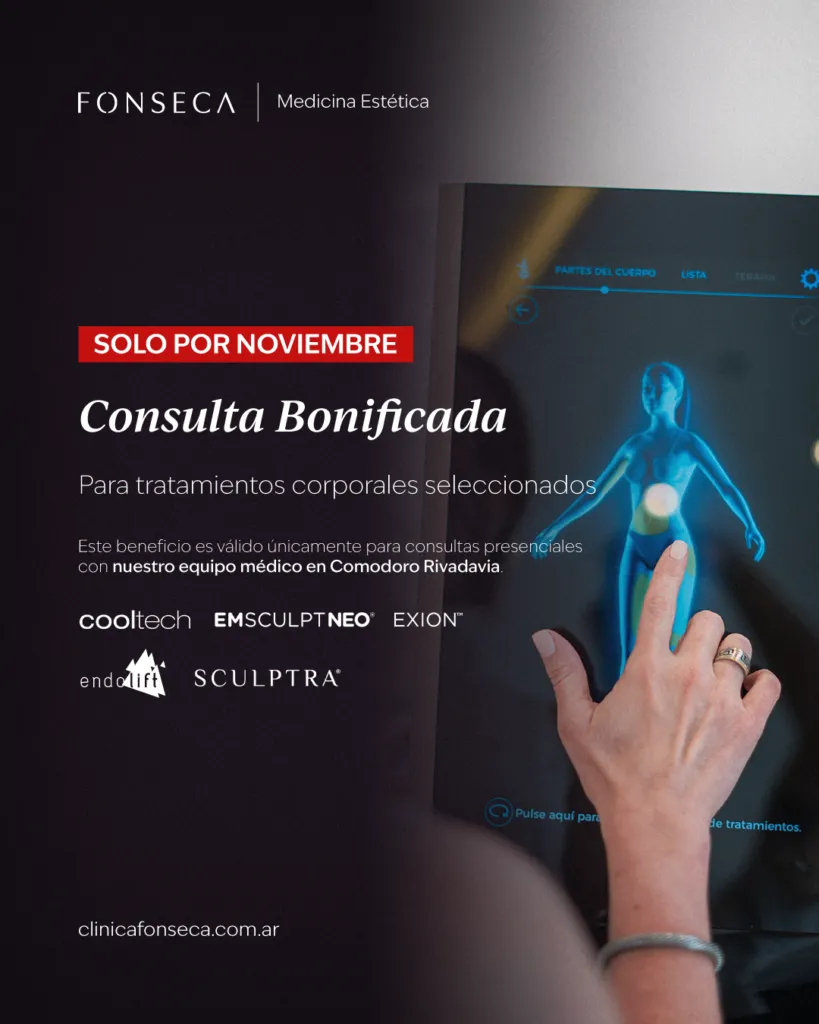 Accedé sin cargo a tu consulta con nuestro equipo médico para los siguientes tratamientos seleccionados: Cooltech Define, EmSculpt Neo, Exion, Endolift, Sculptra Corporal.